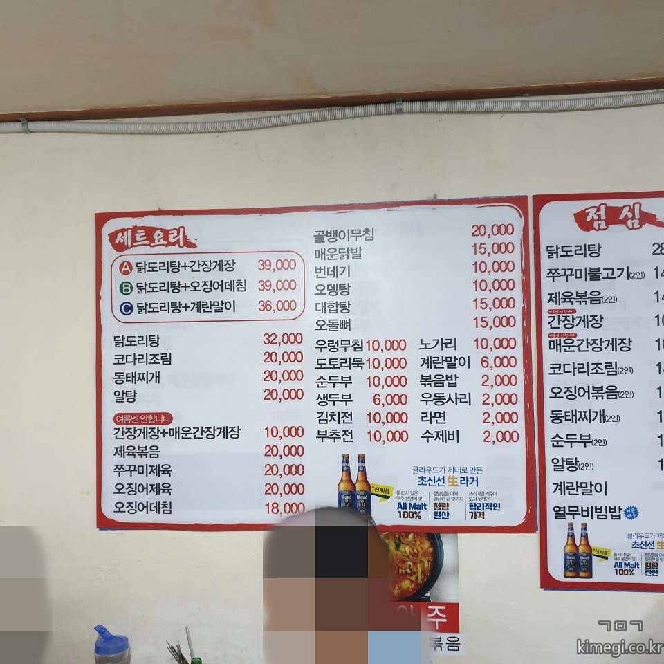 그중에서 닭볶음탕이 메인이고 코다리 조림, 동태찌개, 알탕을 판매해요.