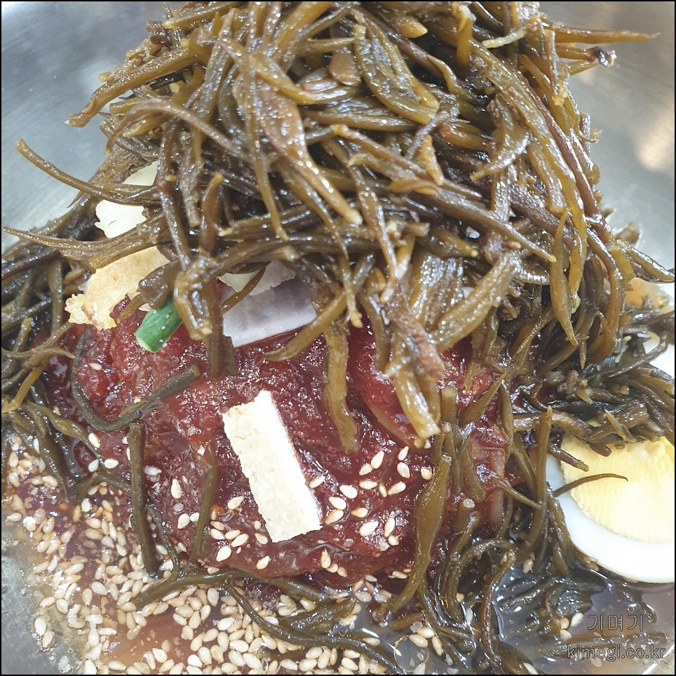 물냉면에도 역시 톳이 정말 많이 올라가 있습니다.