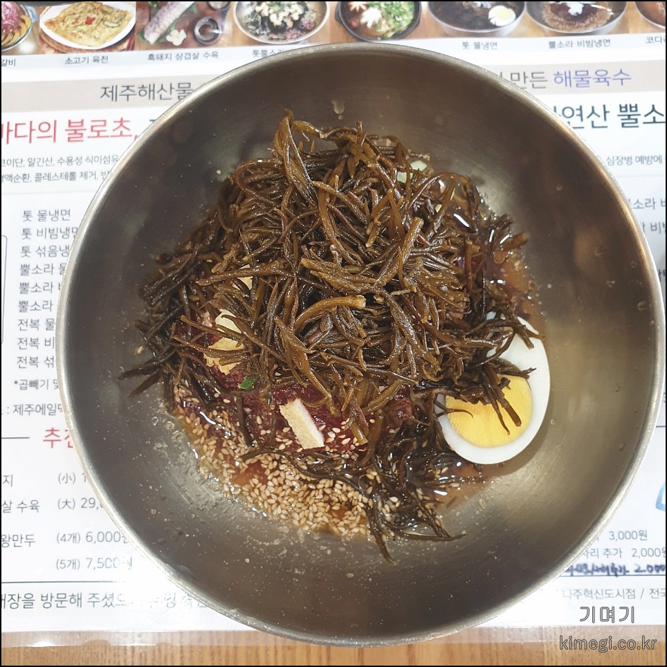 제주 올레 면옥의 톳 비빔냉면입니다.