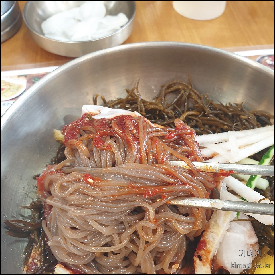 저는 비빔에 냉육수를 조금 넣어서 비벼먹는 것을 좋아합니다.