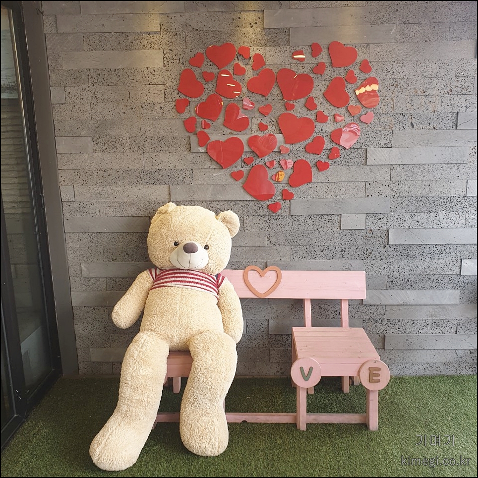 예쁜 인형과 예쁜 배경으로 포토존을 만들어 놨어요.