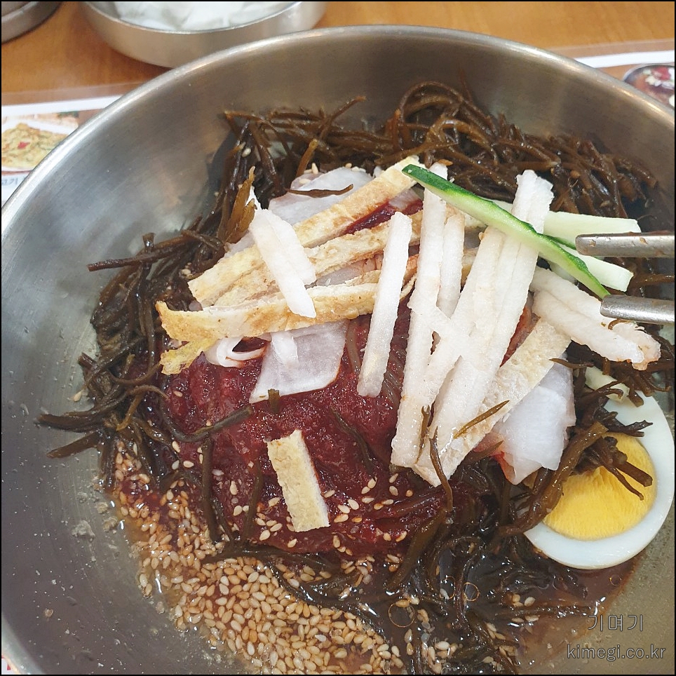 제주 올레 면옥의 톳 비빔냉면입니다.