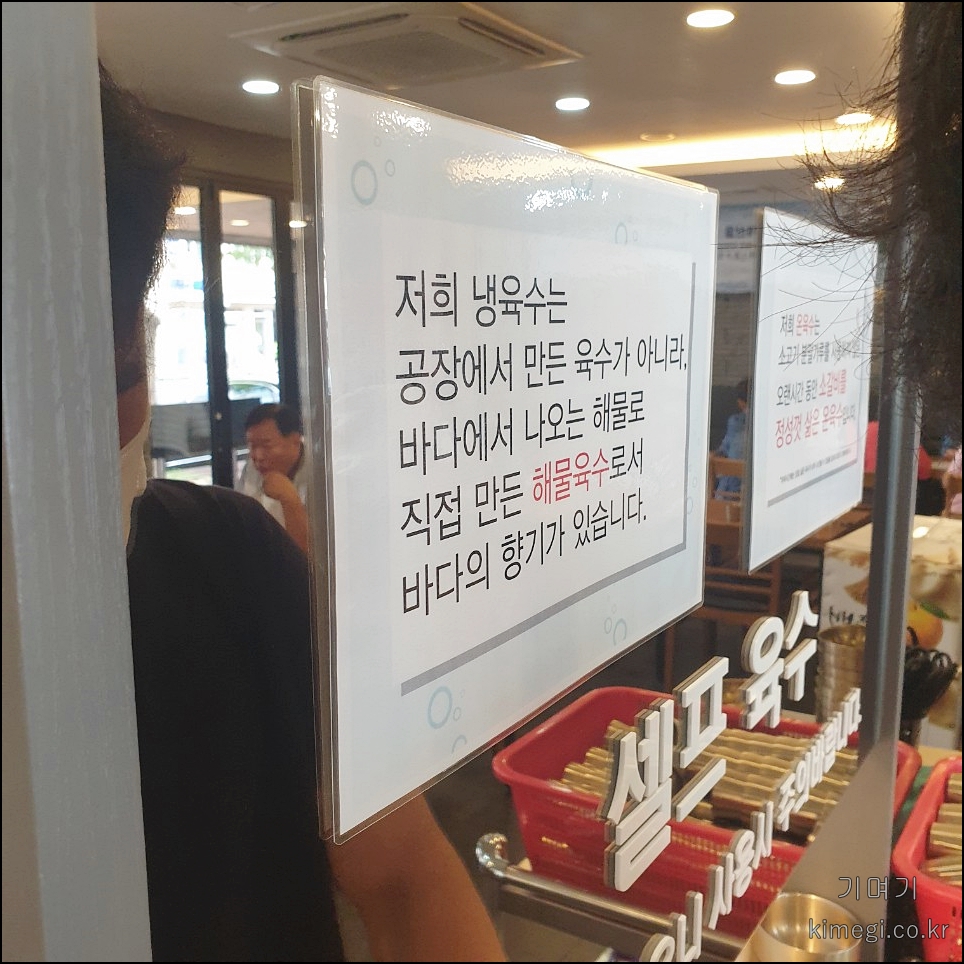 냉면의 냉육수는 해물로 직접 만든 해물 육수라고 합니다.