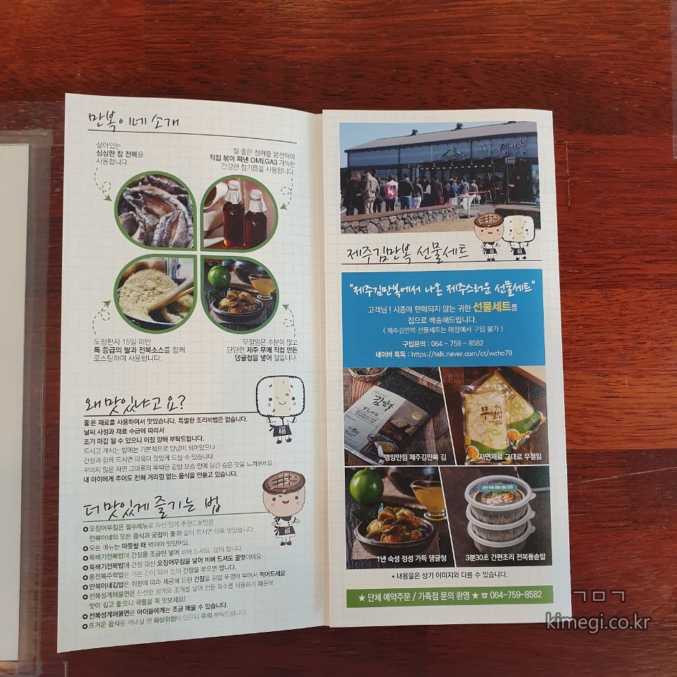 음식을 기다리면서 김만복김밥 팸플릿을 봤어요.