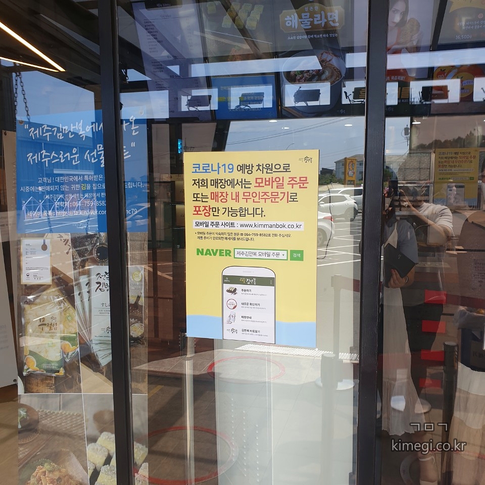 코로나 19 관련 '김만복 김밥'에서는 빠른 대응을 하고 있더라고요.