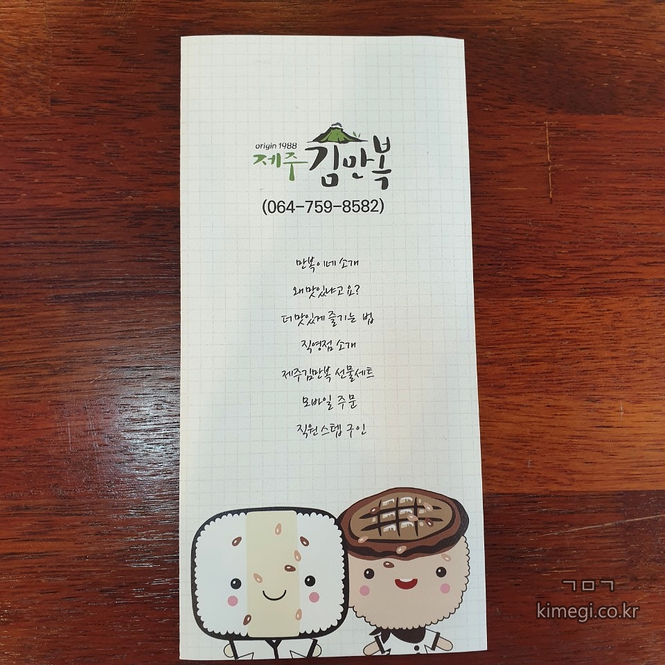 제주시에 위치한 김만복 김밥 본점 메뉴판입니다.