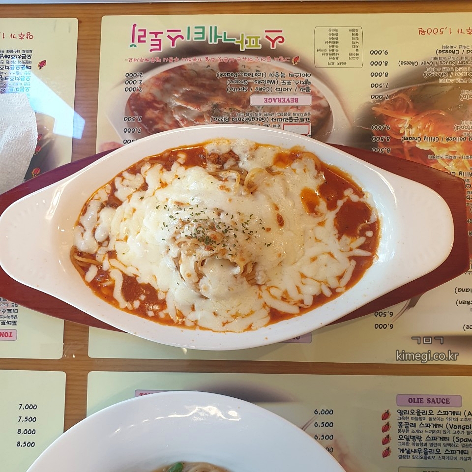 저렴한 스파게티 집에 오면 꼭 주문하는 오븐 스파게티입니다.