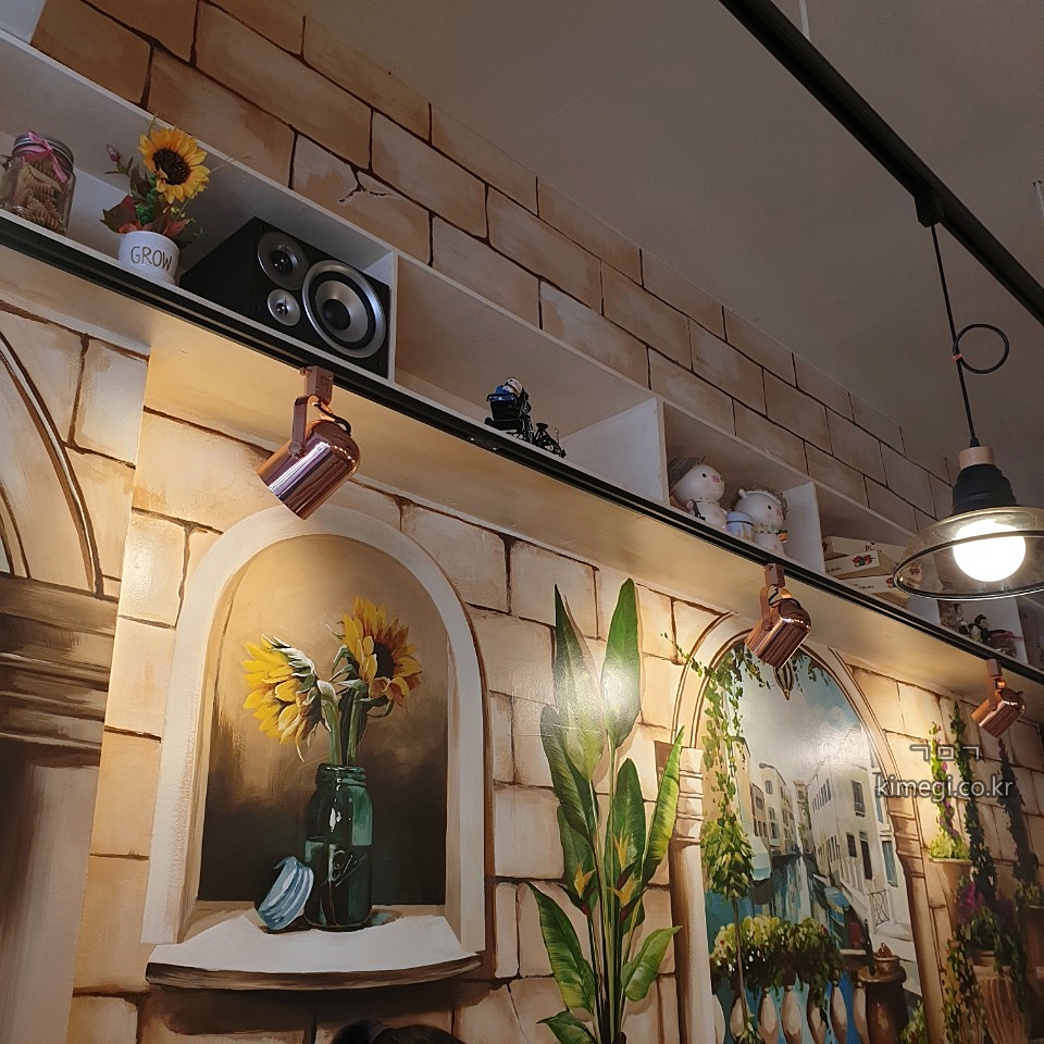 벽에 그림이 너무 멋있게 그려져 있습니다.