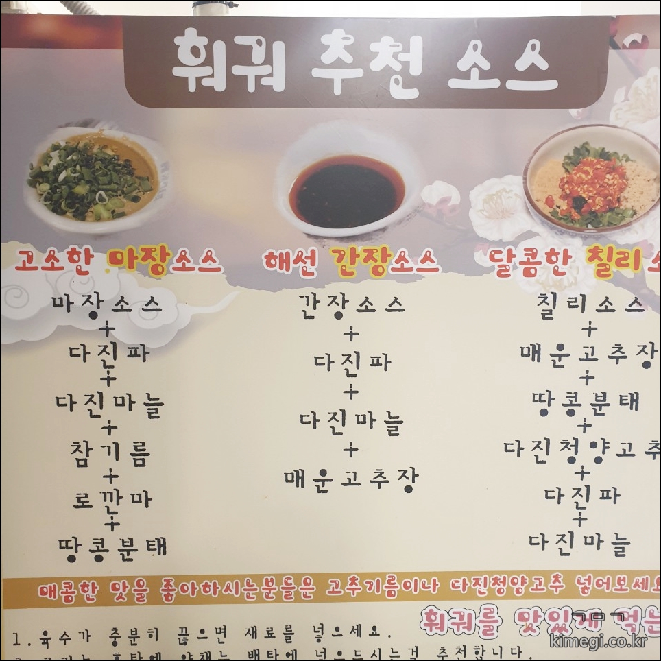 저는 고소한 마장 소스가 가장 맛있었어요.