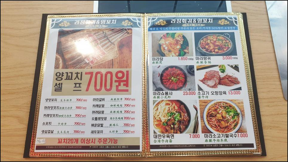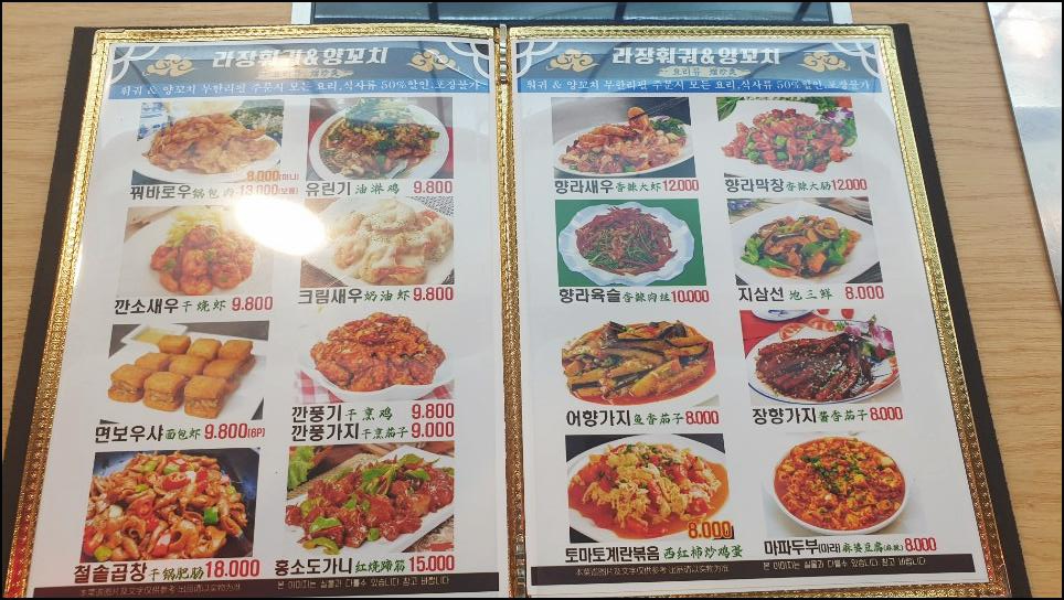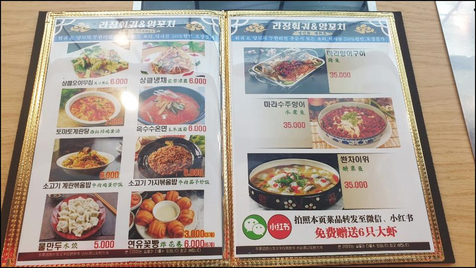 신촌역 중식 맛집 라장 훠궈 메뉴판입니다.