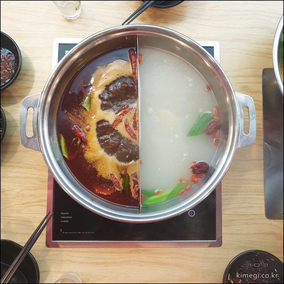 재료를 가지고 오니 이렇게 훠궈 육수가 세팅되어 있었습니다.