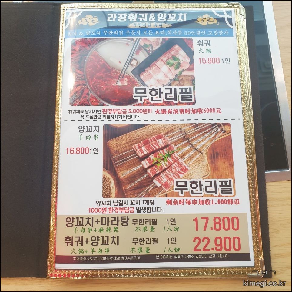 정말 저렴하게 훠궈 무한리필을 즐길 수 있어요.
