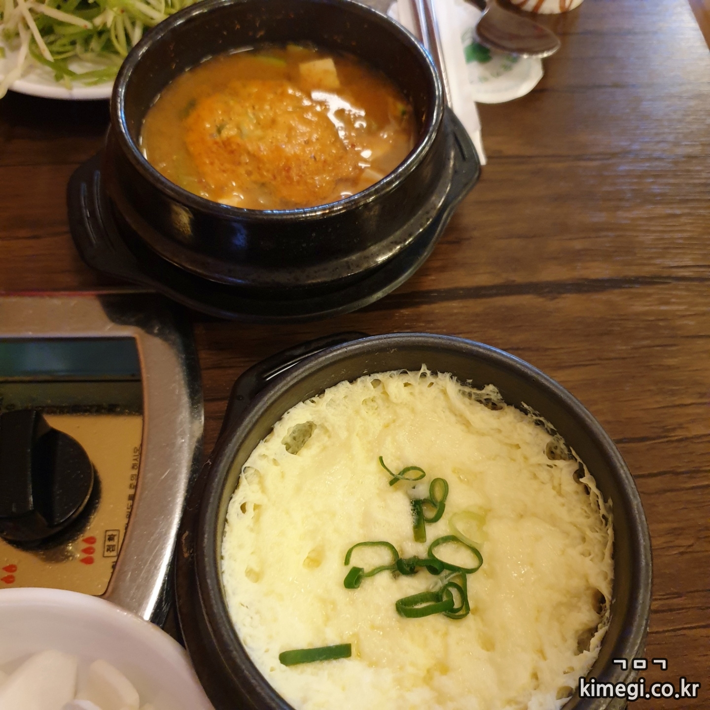 고기가 익어질 때쯤 된장찌개와 계란찜도 나옵니다.