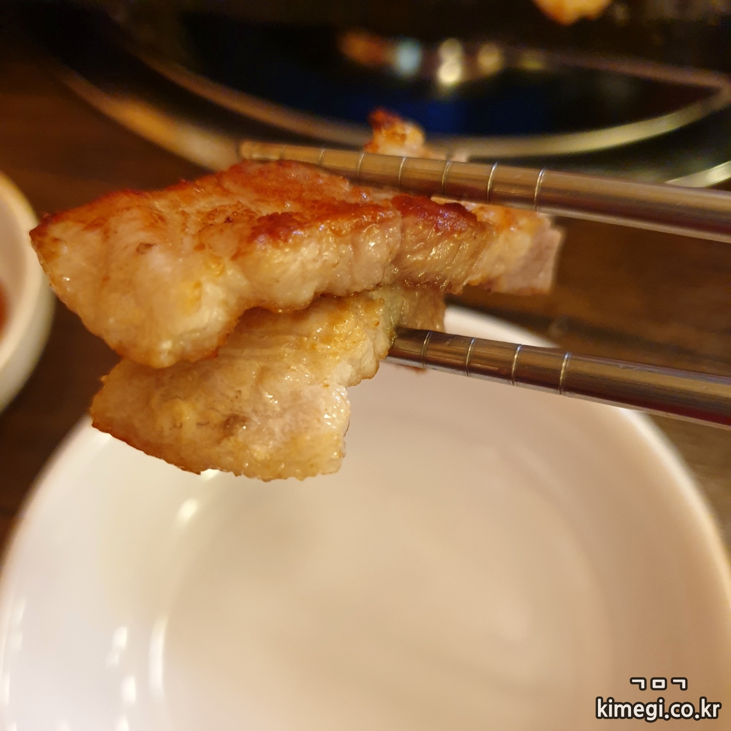 아주 부드럽게 잘 익은 삼겹살입니다.