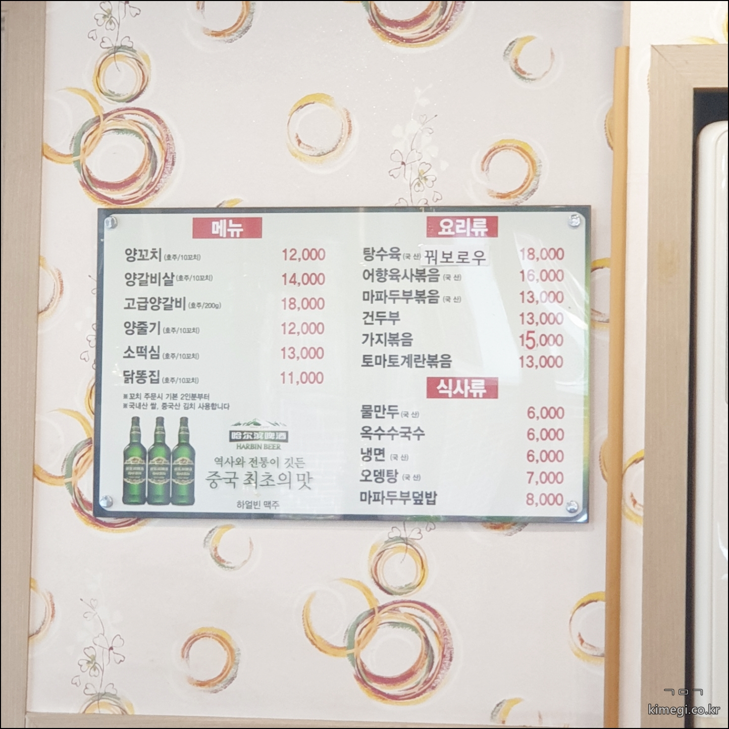 양재역 양꼬치 중식집 메뉴판입니다.