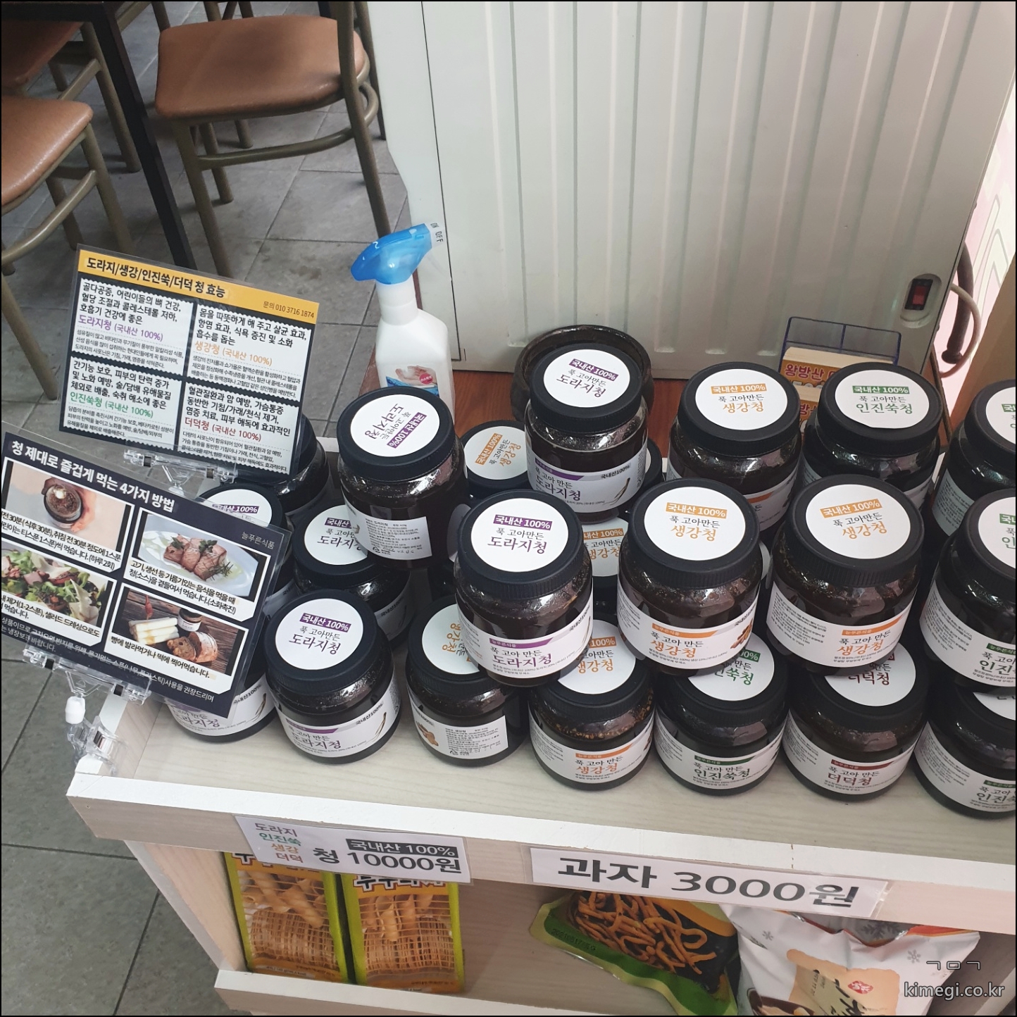 입구에 이렇게 도라지청, 생각청을 팔더라고요.