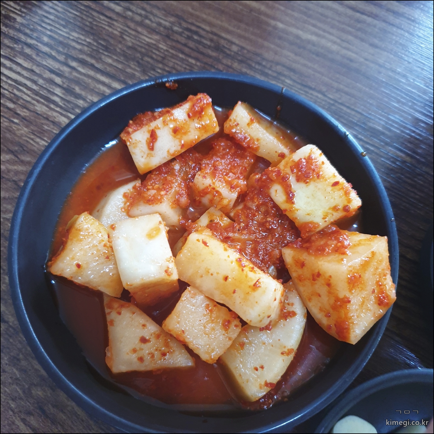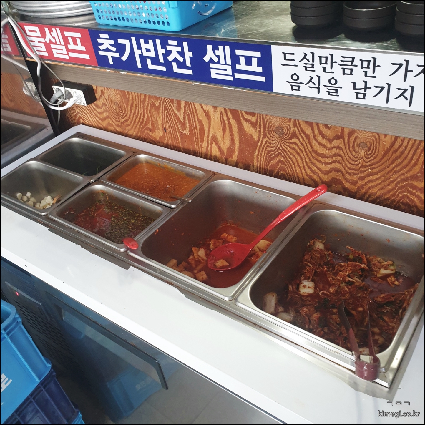 기본 반찬으로는 배추김치, 깍두기, 새우젓, 마늘, 고추가 나옵니다.