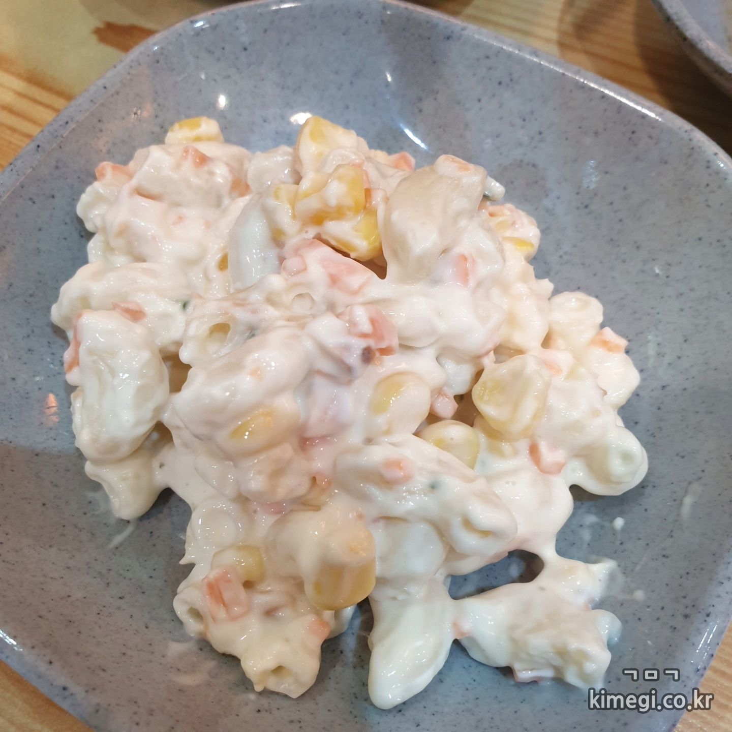 백김치, 마카로니, 무조림, 완두콩이 나왔습니다.