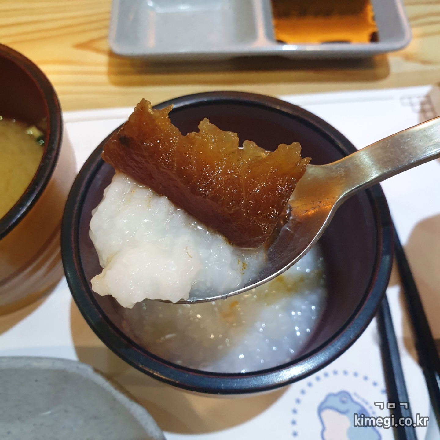 이 죽에 무조림을 얹어 먹으면 진짜 맛있어요.