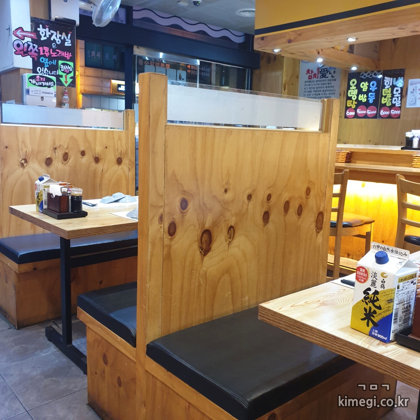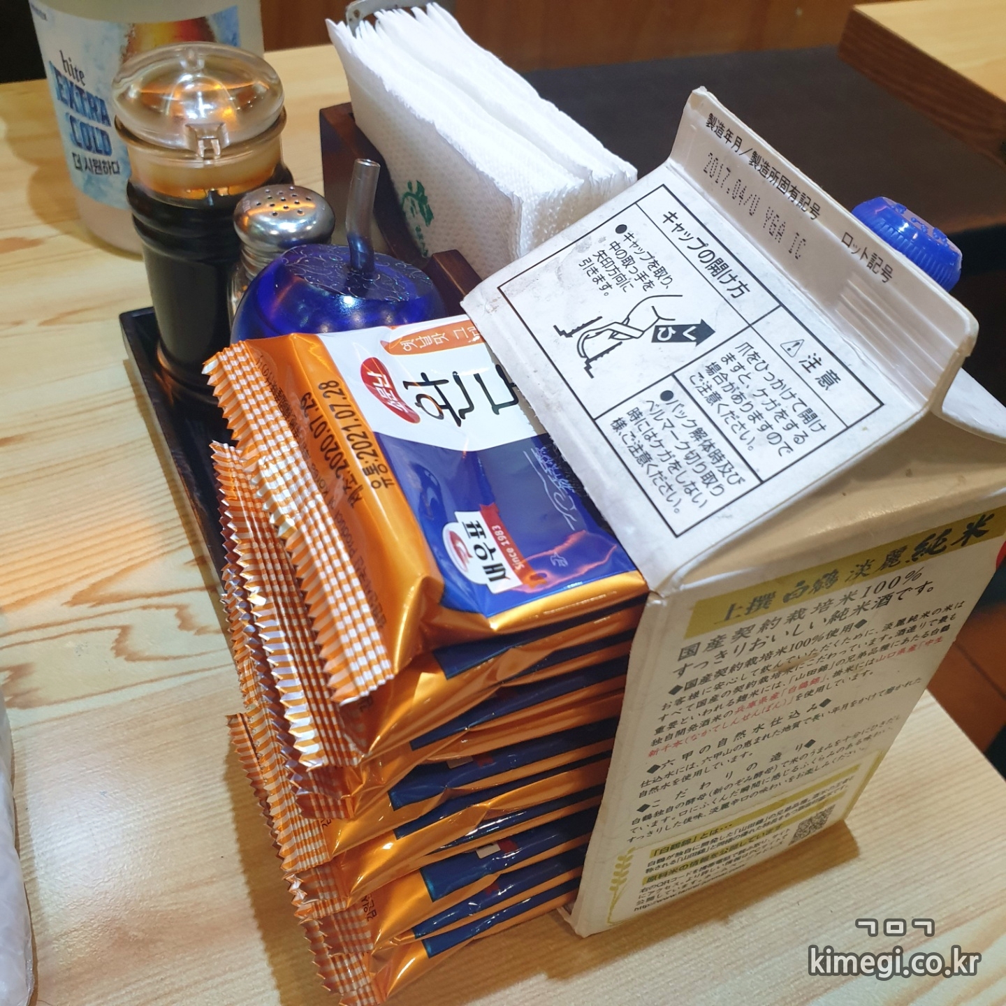 테이블마다 김이 사케 통에 꽂아져 있는 모습이 너무 귀여웠어요.