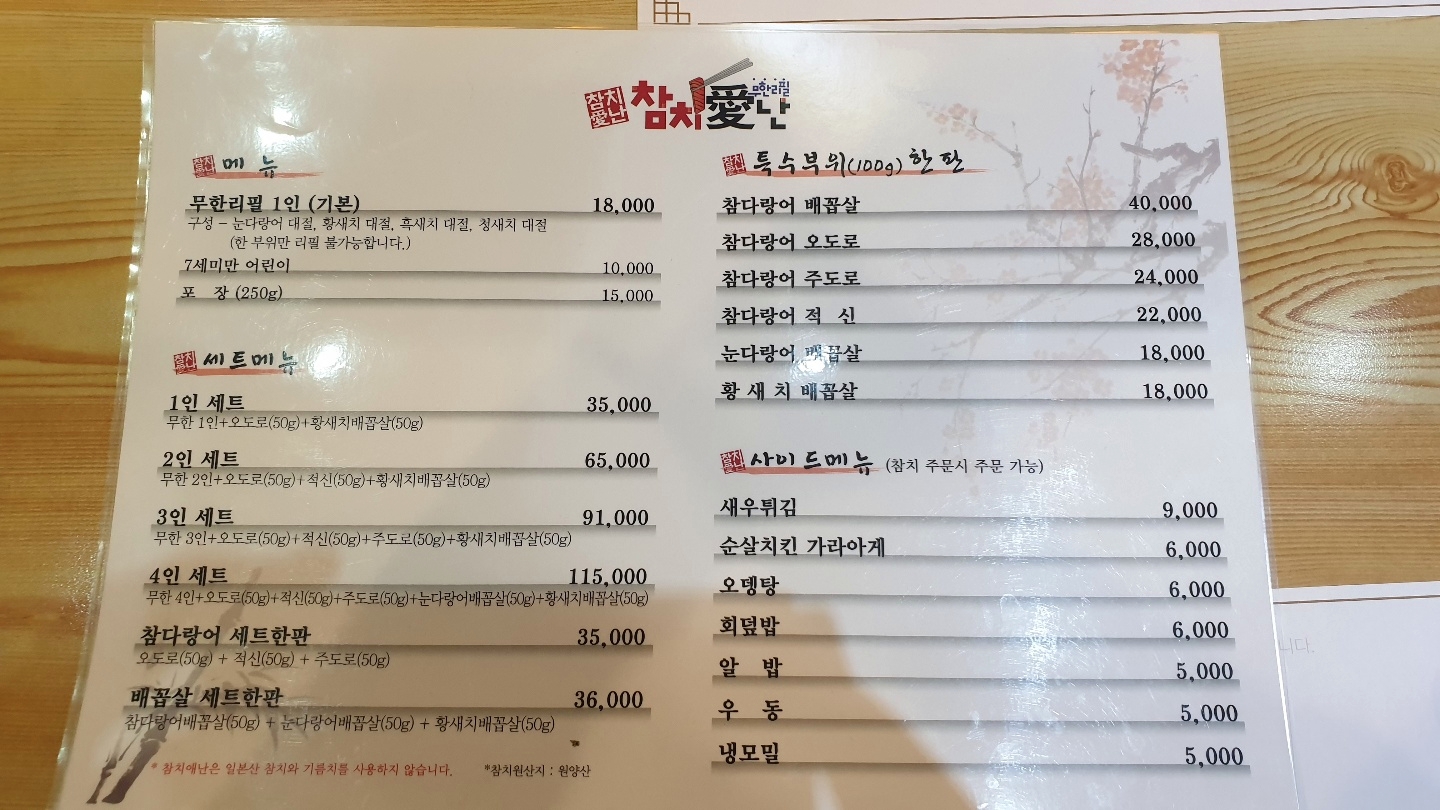 '참치애난'은 1인 18,000원으로 무한으로 참치를 즐길 수 있습니다.