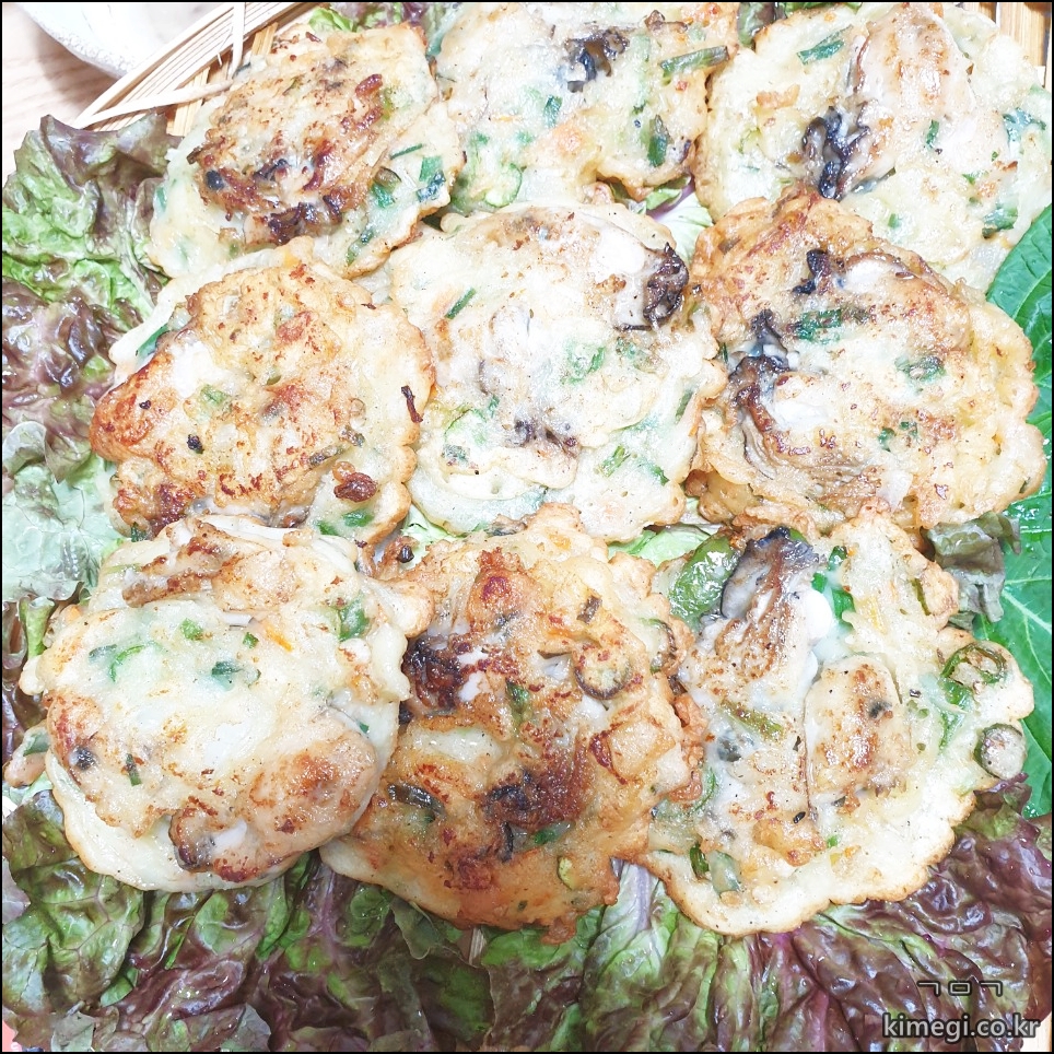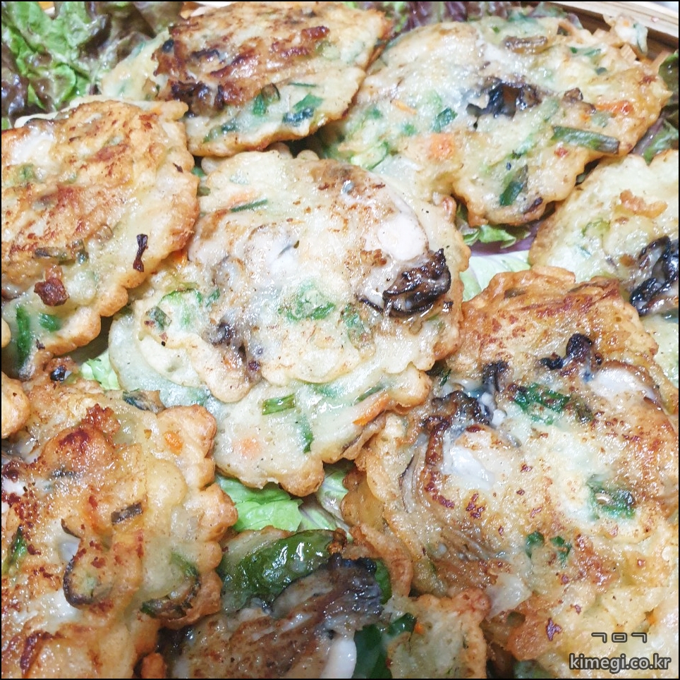 싱싱한 굴이 들어간 굴전은 정말 맛있었어요.