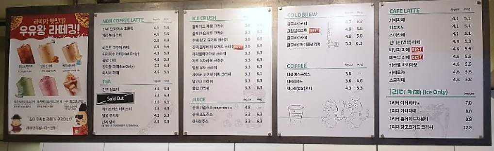 사실 카페 메뉴가 다 거기서 거기죠.