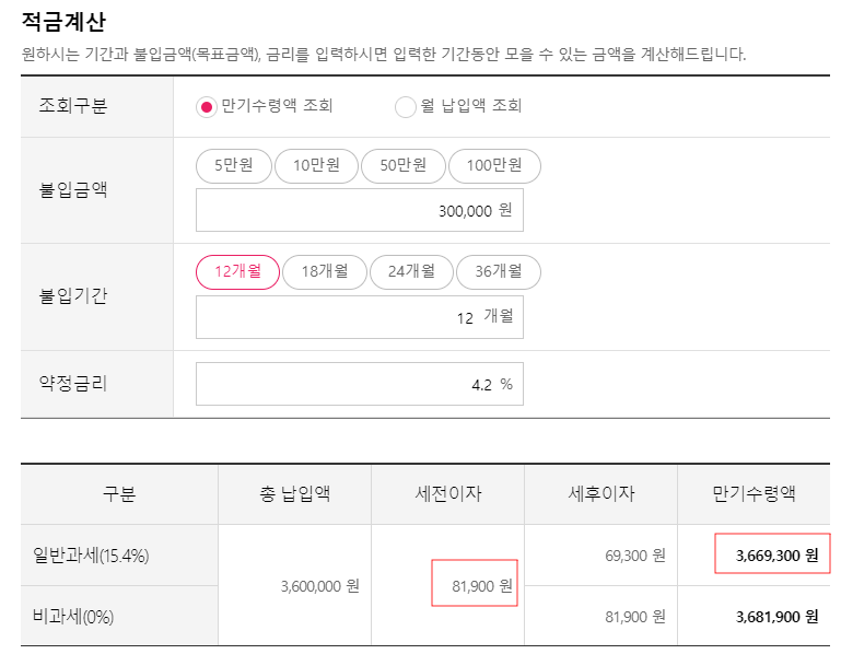 세후 만기 수령액 3,669,300원으로 꽤 많은 목돈을 찾을 수 있어요.