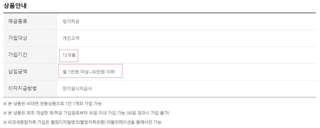 이렇게 좋은 조건의 적금은 가입기간과 납입금액 한도가 있습니다.