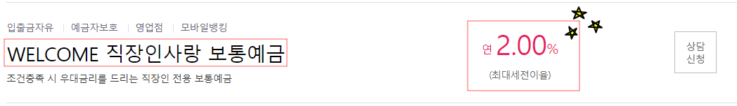 저는 그 통장을 'WELCOME 직장인 사랑 보통예금'으로 추천합니다.