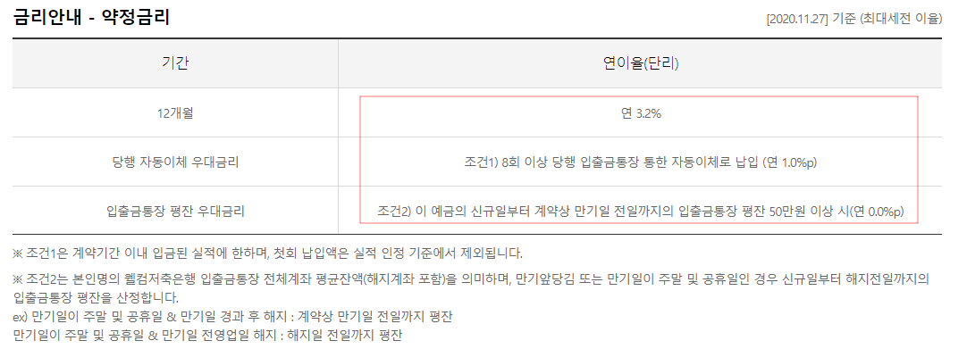 더 좋은 적금도 웰컴에 있긴 한데 우대금리 조건이 까다롭습니다.