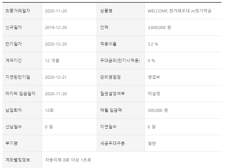 작년 12월부터 입금하여 다음 달에 만기 되는 제 적금입니다.