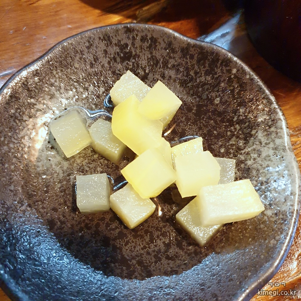 기본 밑반찬으로는 깍두기와 단무지가 나옵니다.