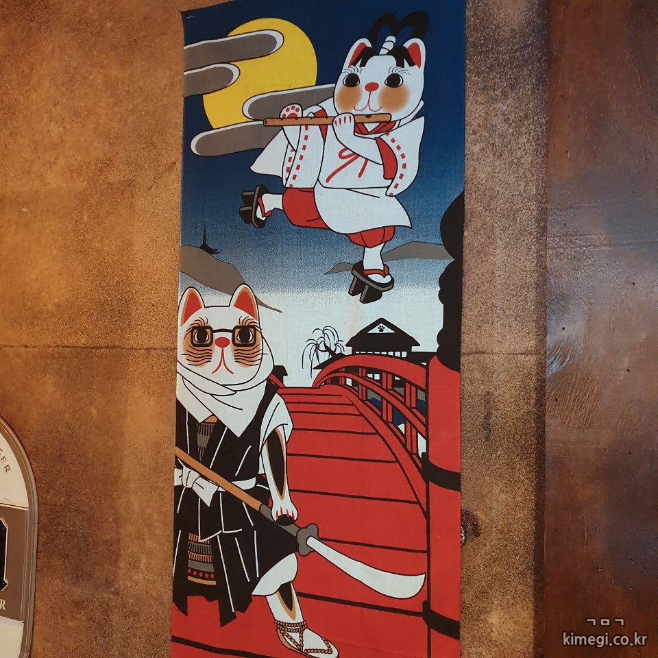 벽면에는 일본 전통옷을 입은 캐릭터 그림들이 있었어요.