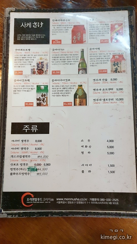 시청역 멘무샤 메뉴판입니다.