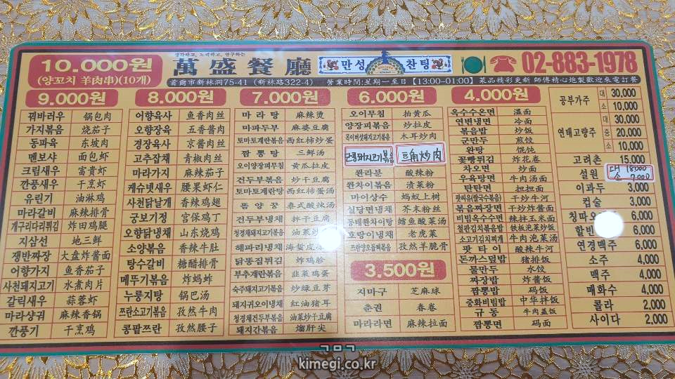 만성찬팅의 가장 비싼 메뉴는 단돈 만원입니다.