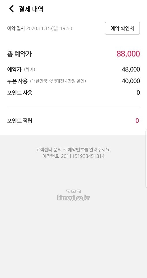 야놀자 숙박 대전으로 40,000원 쿠폰을 사용해서 2박에 48,000원에 예약했습니다.