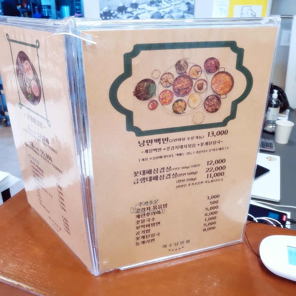 낭만항 메뉴판