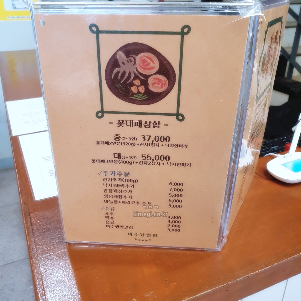 여수 맛집 낭만항 메뉴판입니다.