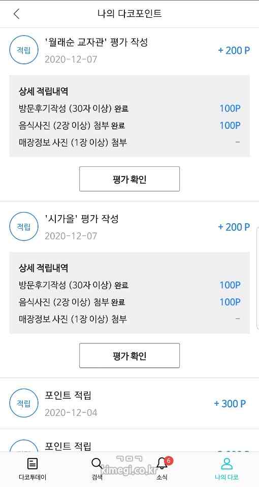 리뷰를 하고 평가가 완료되면 포인트가 적립됩니다.