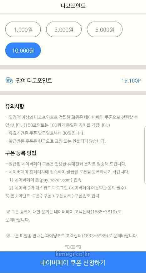 일정 금액 이상 모으면 네이버 페이로 환전 가능합니다.