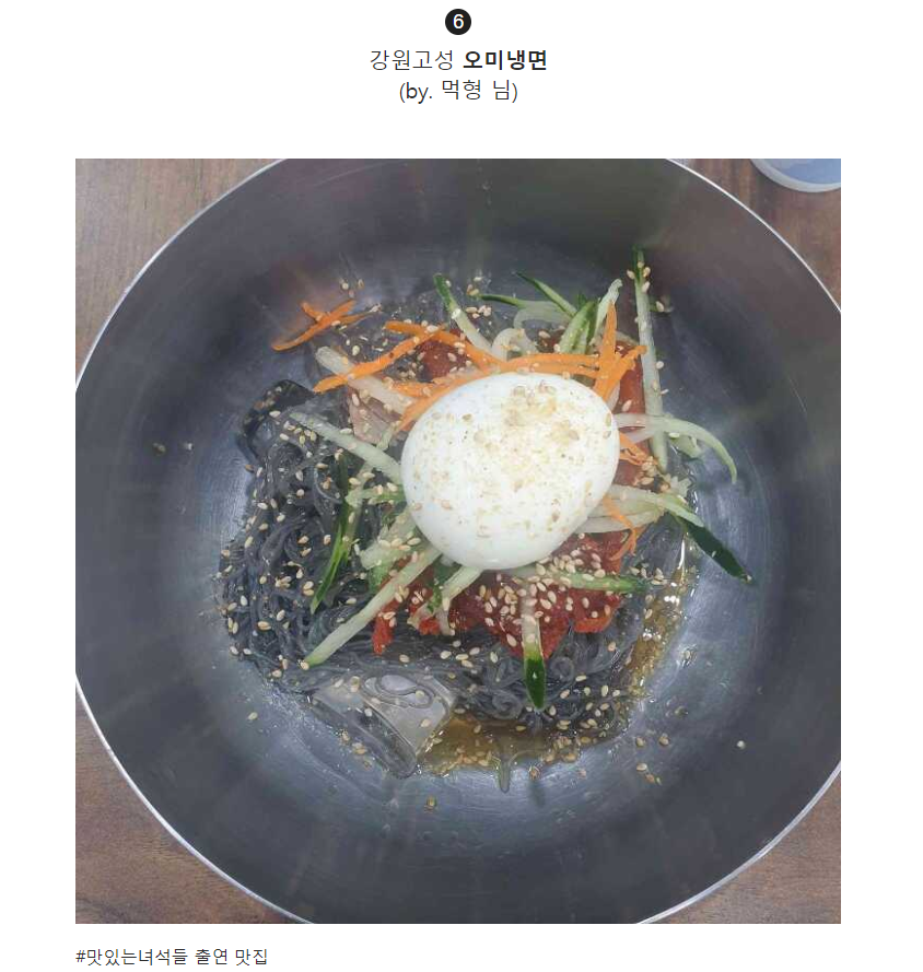 저는 강원도 고성 오미 냉면 리뷰가 매거진에 선정되었어요.