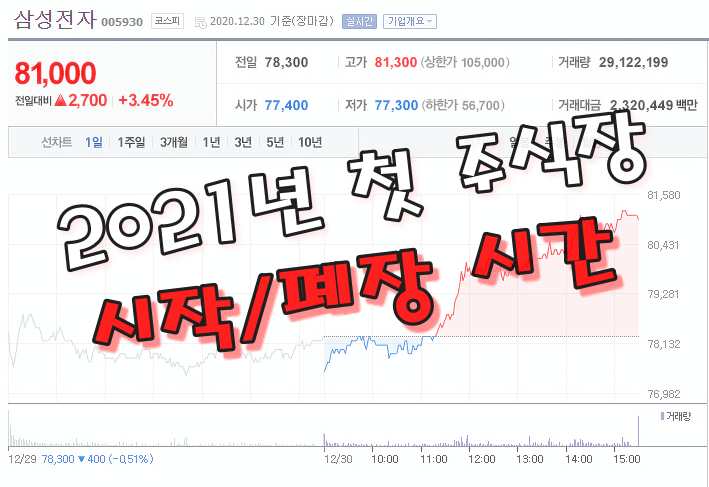 21년 첫 주식 마감시간 : 1월 4일 15시 30분