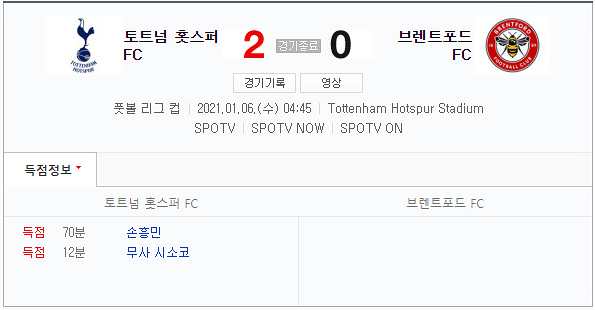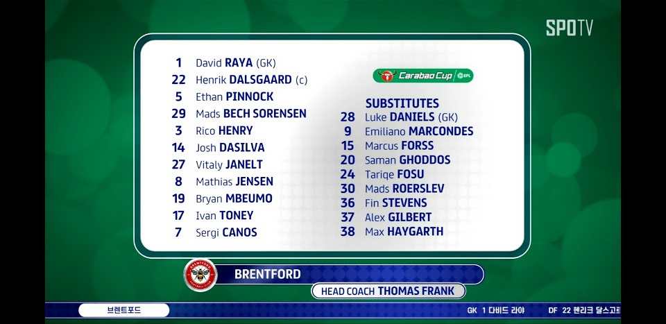 브렌트포드 : 토트넘 카라바오컵 준결승