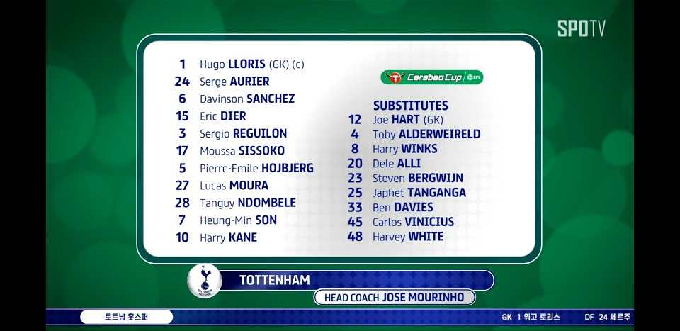 토트넘은 주전을 총동원하여 4-3-3 전형으로 나왔습니다.