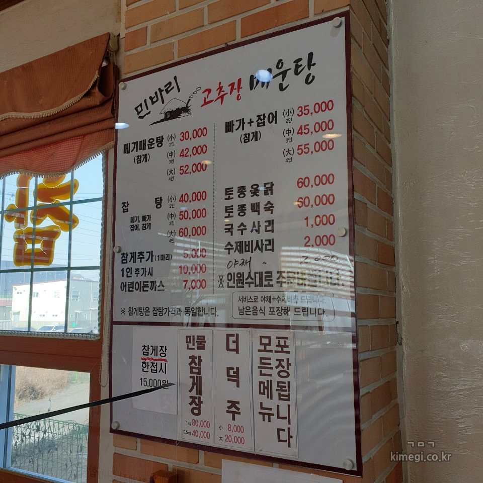 파주 맛집 민바리 매운탕 메뉴판