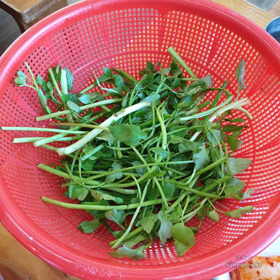 미나리와 수제비 추가분을 서비스로 같이 줍니다.