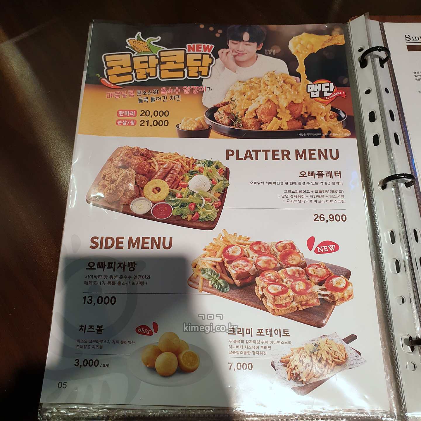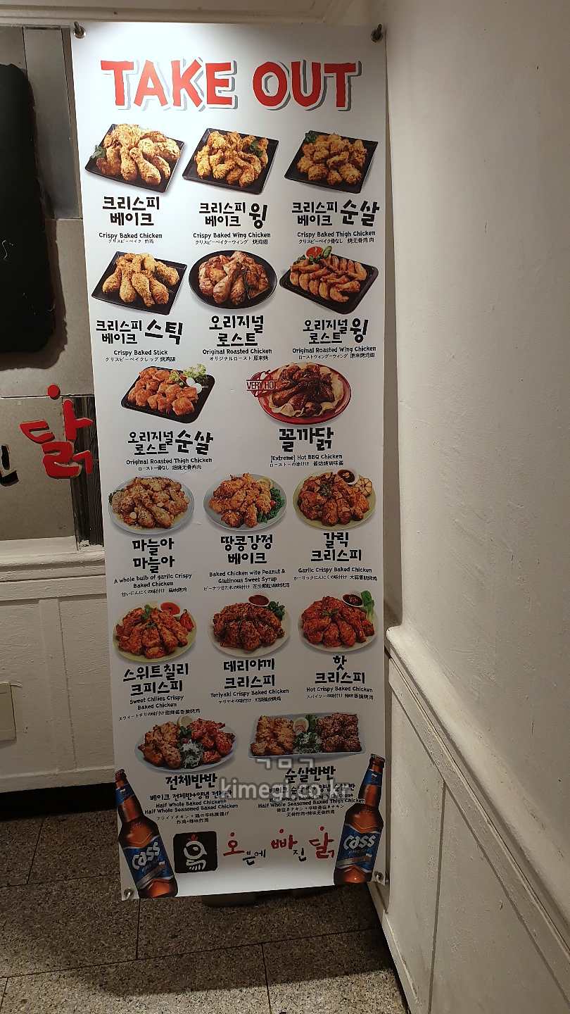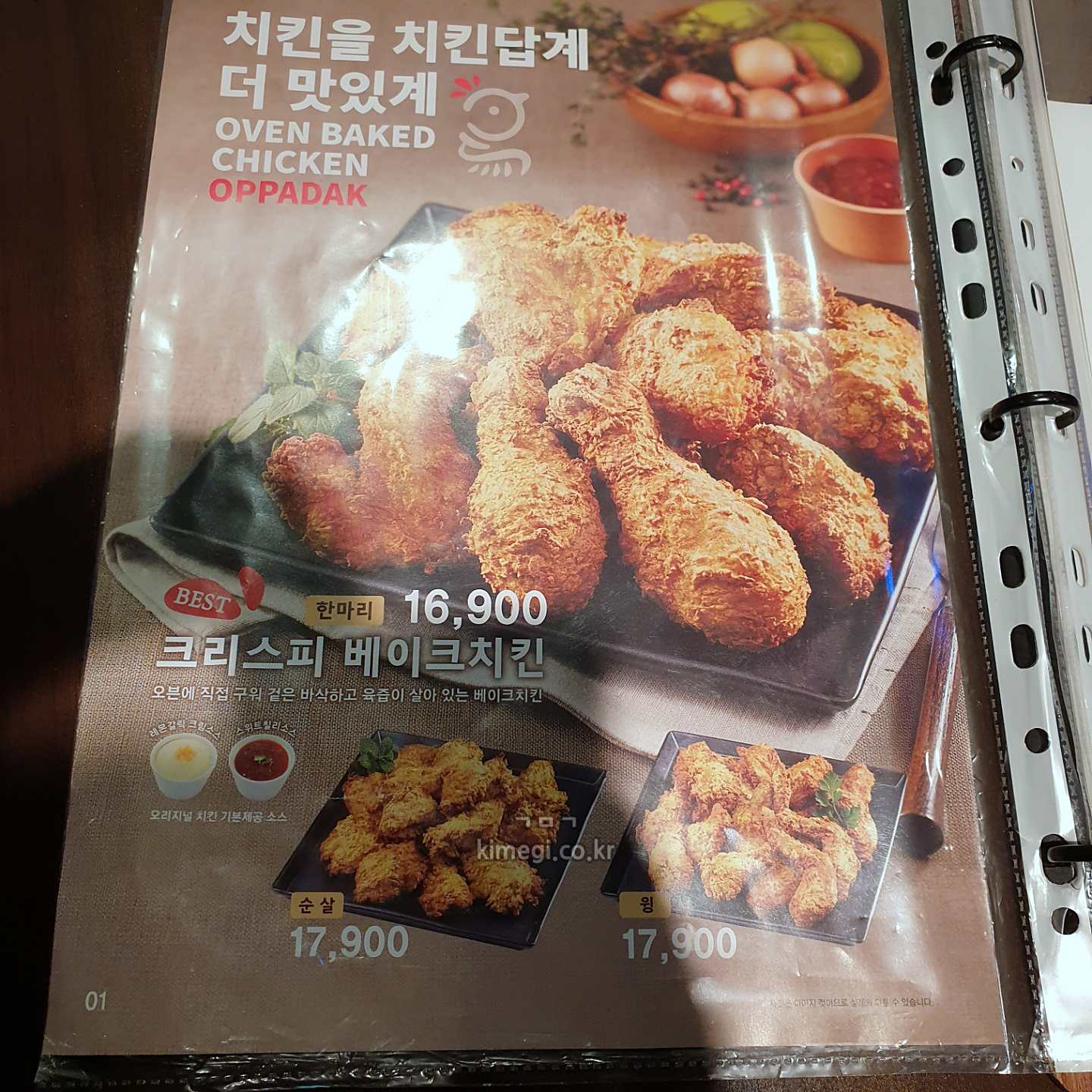 왕십리역 오븐에 빠진 닭 메뉴판입니다.