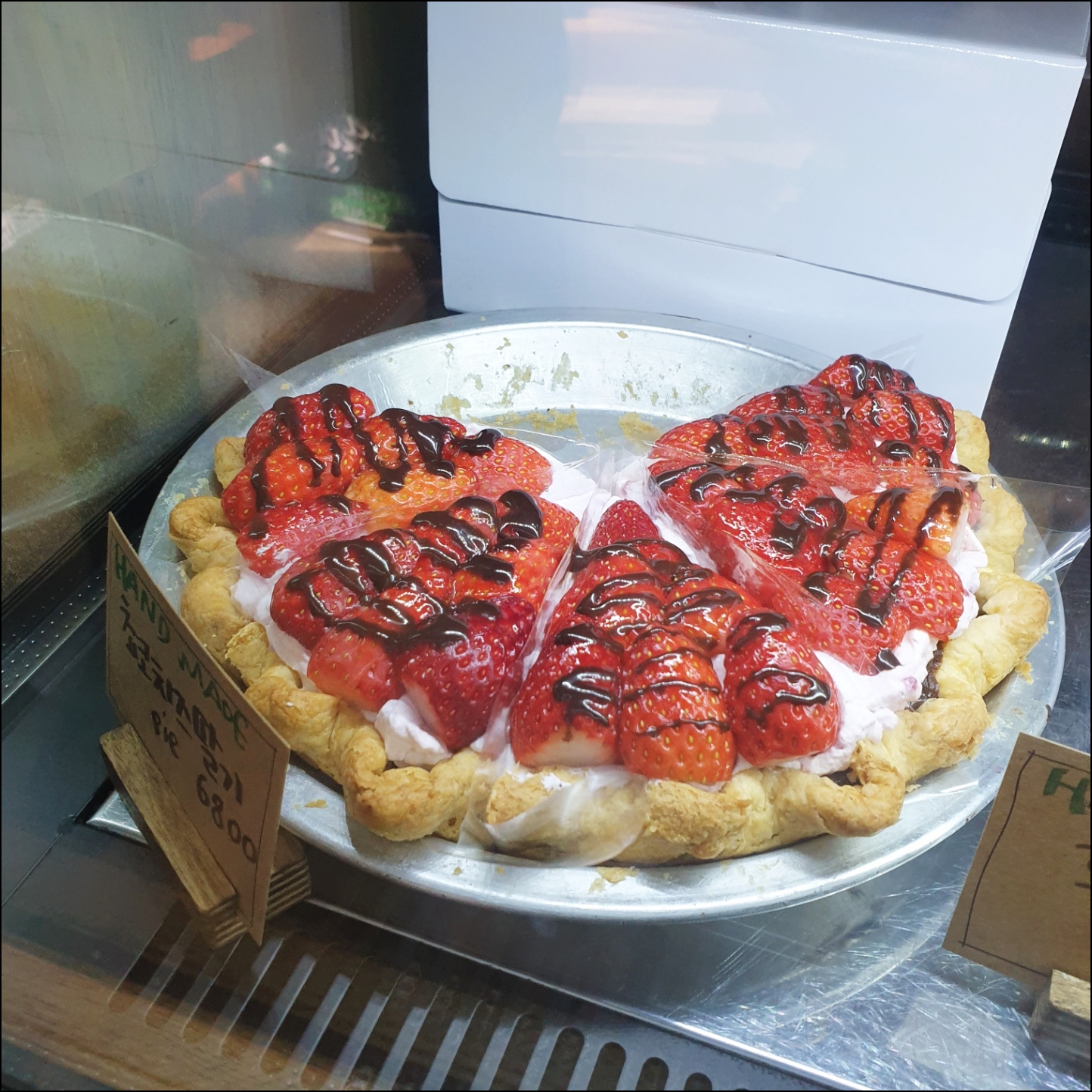 포장한 케이크 사진을 못 찍은 게 아쉽네요.