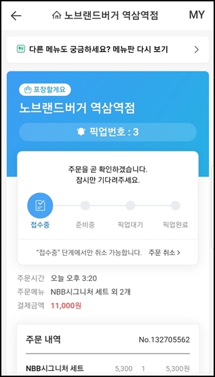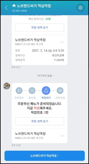 주문 후 메뉴 준비가 끝나면 연락도 옵니다.